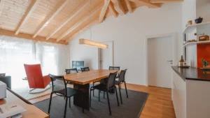 Der natürliche Baustoff Holz sorgt nicht nur für ein angenehmes Raumklima, sondern auch für eine besonders hohe Wohnqualität und gesunde Lebensräume.