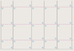Getrocknete, 23 mm starke Bretter in unterschiedlichen Breiten werden kreuzweise Schicht für Schicht verpresst und mit Aluminium-Rillenstiften zu einer Wandeinheit verbunden.